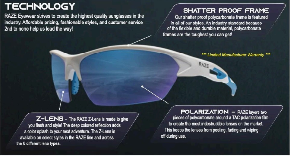 In 2019, RAZE began with the founder, Brian Whitehouse wanting to create an alternative to the overly expensive shades without making just another "gas station" brand. As a golf professional, avid fisherman, and outdoor enthusiast...he meticulously designed shades for sports, fishing, and adventure. Focusing on performance, function, and style is what gives RAZE the edge over all other brands.