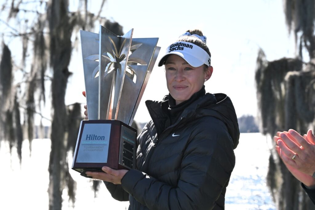 After the final round of the Hilton Grand Vacations Tournament of Champions was canceled due to extreme cold, Korda’s Moving Day, 8-under 64 on Saturday secured her a three-shot win over Amy Yang with a total of 13 under par—her first LPGA title since November 2024.