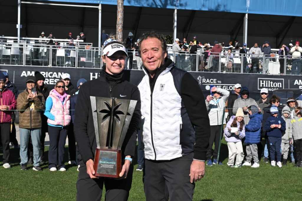Champion Nelly Korda and Hilton Grand Vacations CEO Mark Wang